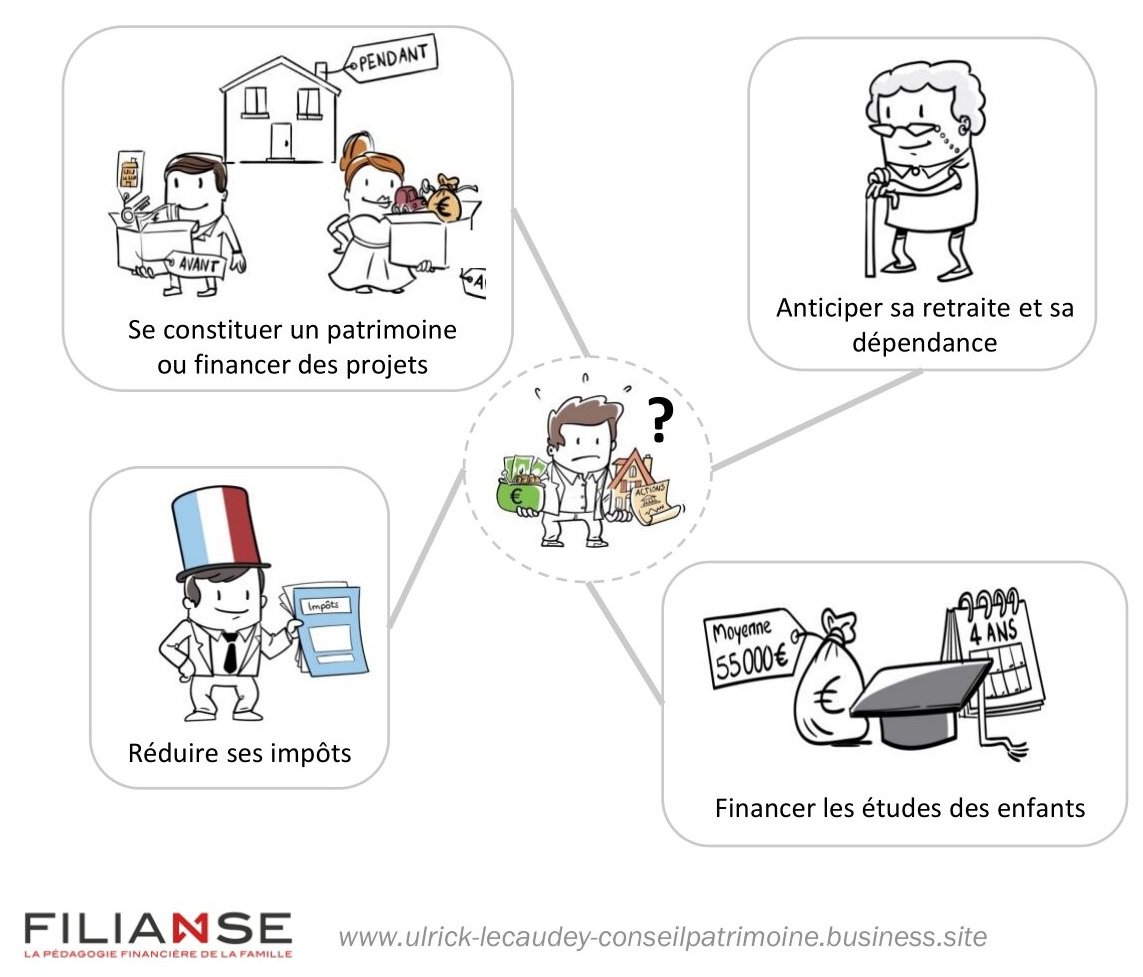 Si la plupart d’entre nous avons été habitués à aborder la gestion de notre patrimoine par le produit, il est en réalité plus efficace de l’aborder en démarrant par nos objectifs (achat de sa résidence principale, études des enfants, retraite et tout autre projet qui nécessite d’avoir été financièrement anticipé…). Cela permet de définir une contribution, un horizon de temps et un niveau de risque adaptés à chaque objectif.
